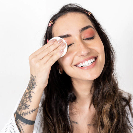 Vous pouvez laver vos disques démaquillants réutilisables à la main après chaque utilisation. Il suffit d'ajouter un peu d'eau et de savon et de les laisser sécher à plat. Vous pouvez également les laver en machine (30°C est la meilleure solution pour l'environnement, mais 60°C convient également). Pour les conserver en toute sécurité, nous vous conseillons d'utiliser un sac à linge.